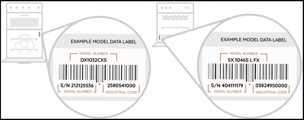 If you identify an affected model, please inform consumers to locate their serial number as shown below and then visit www.hotpointindesitgascookersafety.com or call 0800 316 3887 for further guidance.