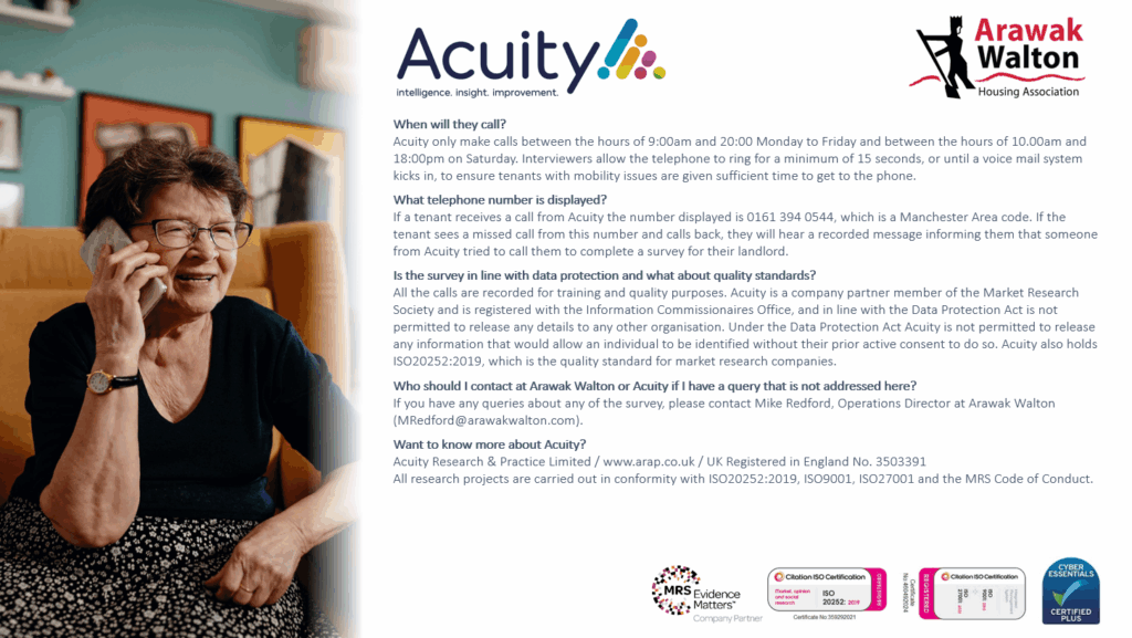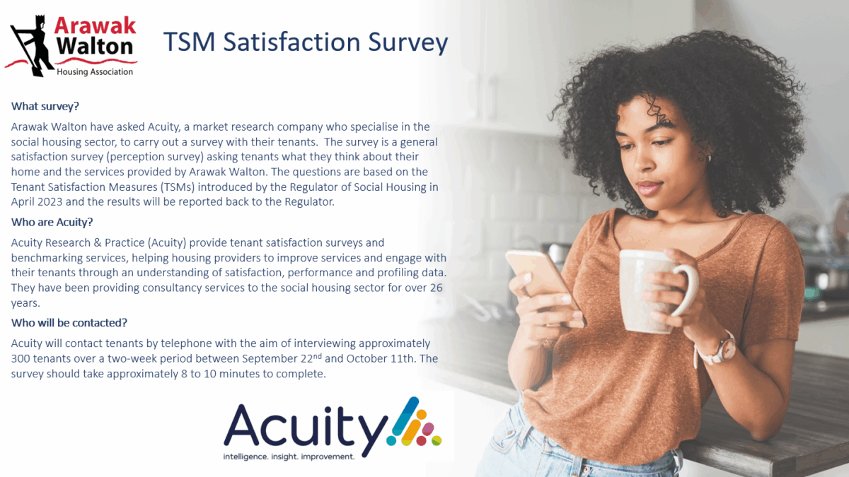 December 19, 2025At Arawak Walton, we’re dedicated to providing high-quality homes and excellent services for our tenants. To make sure we’re meeting your needs — and to understand where we can do even better — we’re running a Tenant Satisfaction Survey with the help of independent market research company, Acuity.